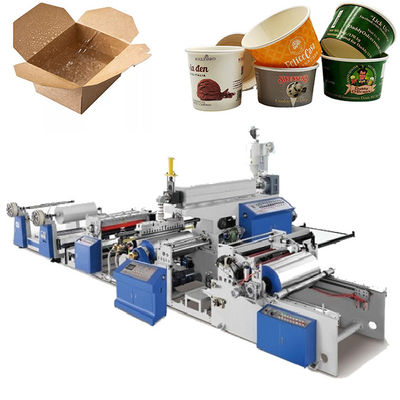 PEの塗被紙のコップのペーパー、ペーパ ボールのペーパー、Instant.Noddleボール ペーパー等を作り出すための原料としてLDPE、LLDPE、PP、PLAおよび他のコーティング等級の薄板になる樹脂を使用して自動単一の側面の放出のラミネーションのPeのコーティングのペーパー マシンは主に、機械速度210 m/minに達することができ実際のフィルムの生産ライン速度は古いモデルより最低の消耗の自動張力制御、また自動修正機能、最高速度および高性能の180 m/min、である。